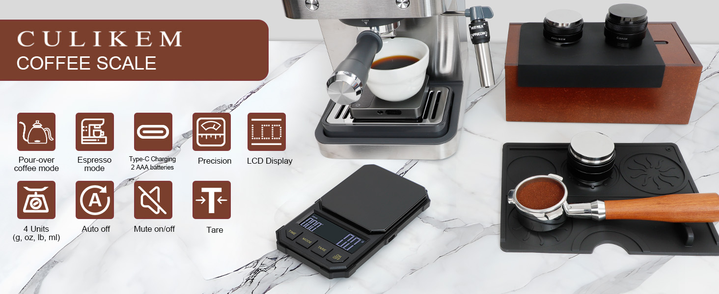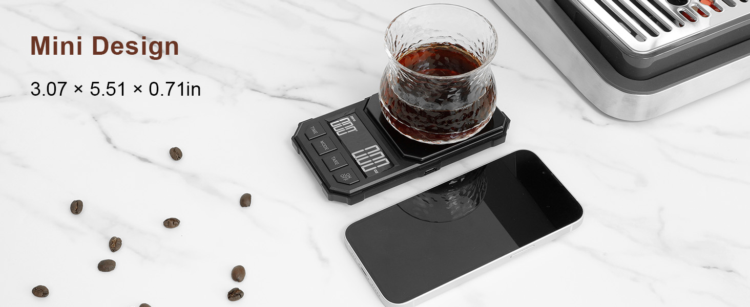 • Accurate measurement: The sensitivity and accuracy of the coffee scale depend on the sensor and sensing structure, and we use precise sensors and conductive structures. The measurement range is 0.3-2000g with an accuracy of 0.1g, +- 0.3g error.