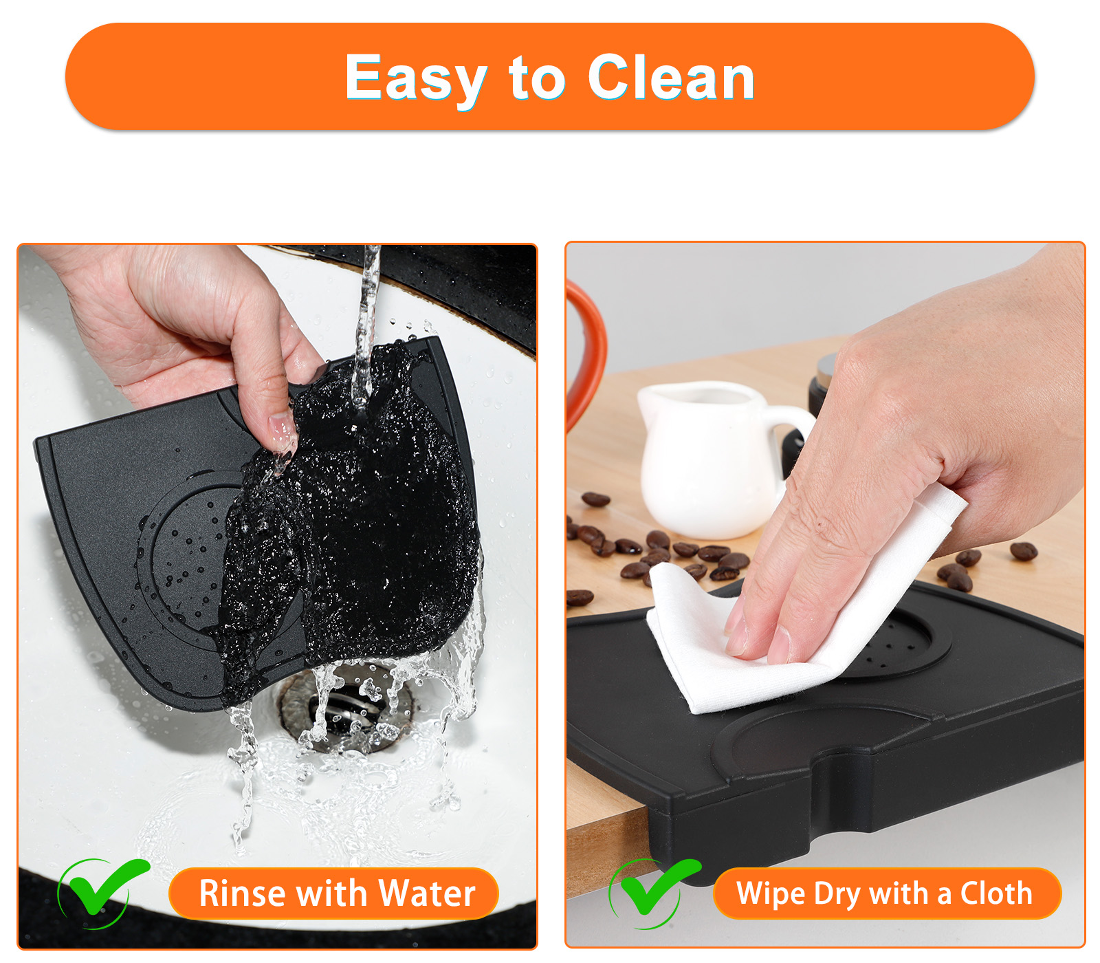 - Easy to Clean Mat: When the mat is stained with coffee, just rinse it in water, gently wipe it with your hand or cloth, and then dry it with a dry cloth or paper to clean it. Just a simple and easy cleaning process.