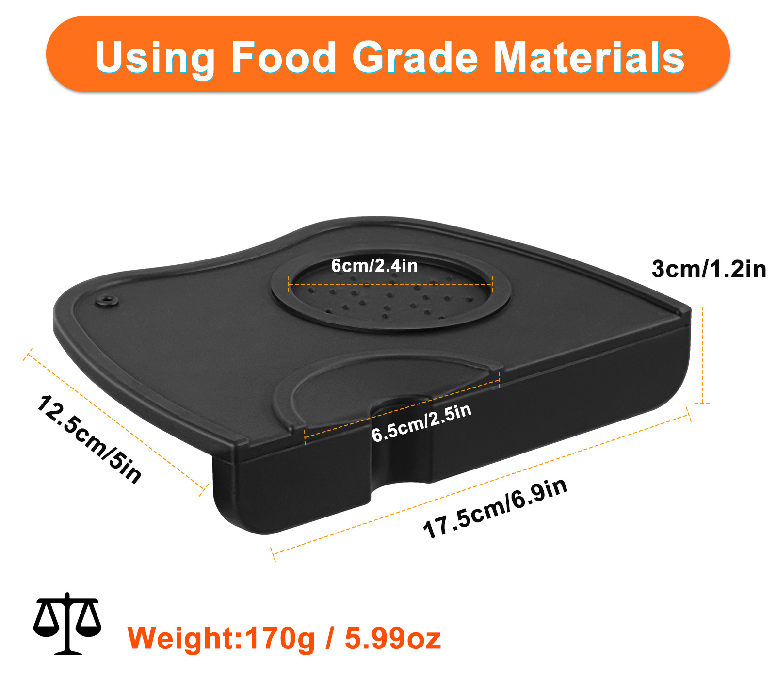 - Using Food Grade Ingredients: Our tamping mats are made of food grade silicone ingredient, which is different from the PVC ingredient used on the market. PVC has the lowest cost and appears smooth and shiny on the surface, but it cannot come into direct contact with food.