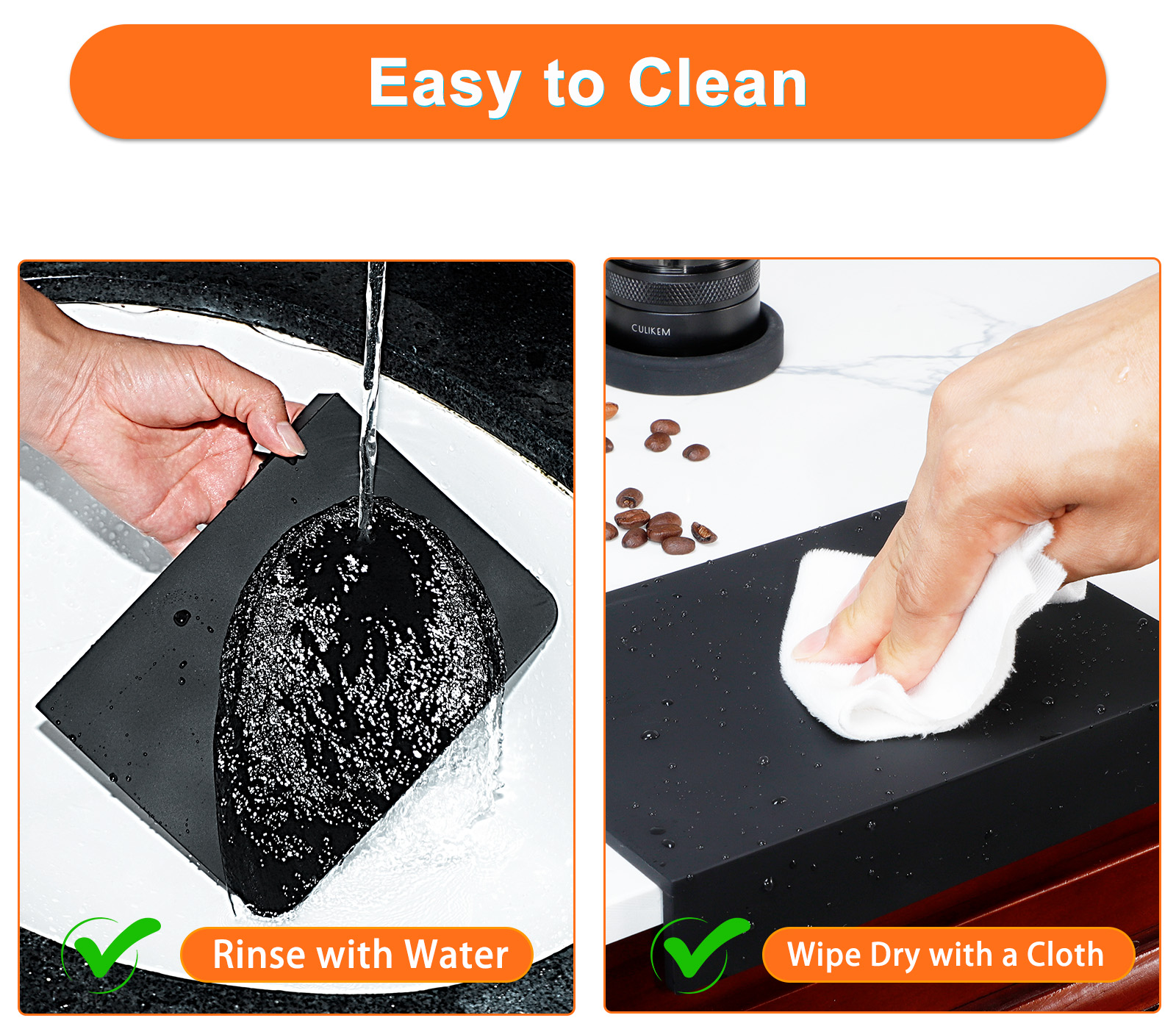 • Easy to clean: When using a espresso tamper to press coffee, the coffee powder can easily spill onto the mat. Do not wipe it directly with your hands or cloth, just rinse it with water and dry it with a clean cloth. The clean mat will come back.