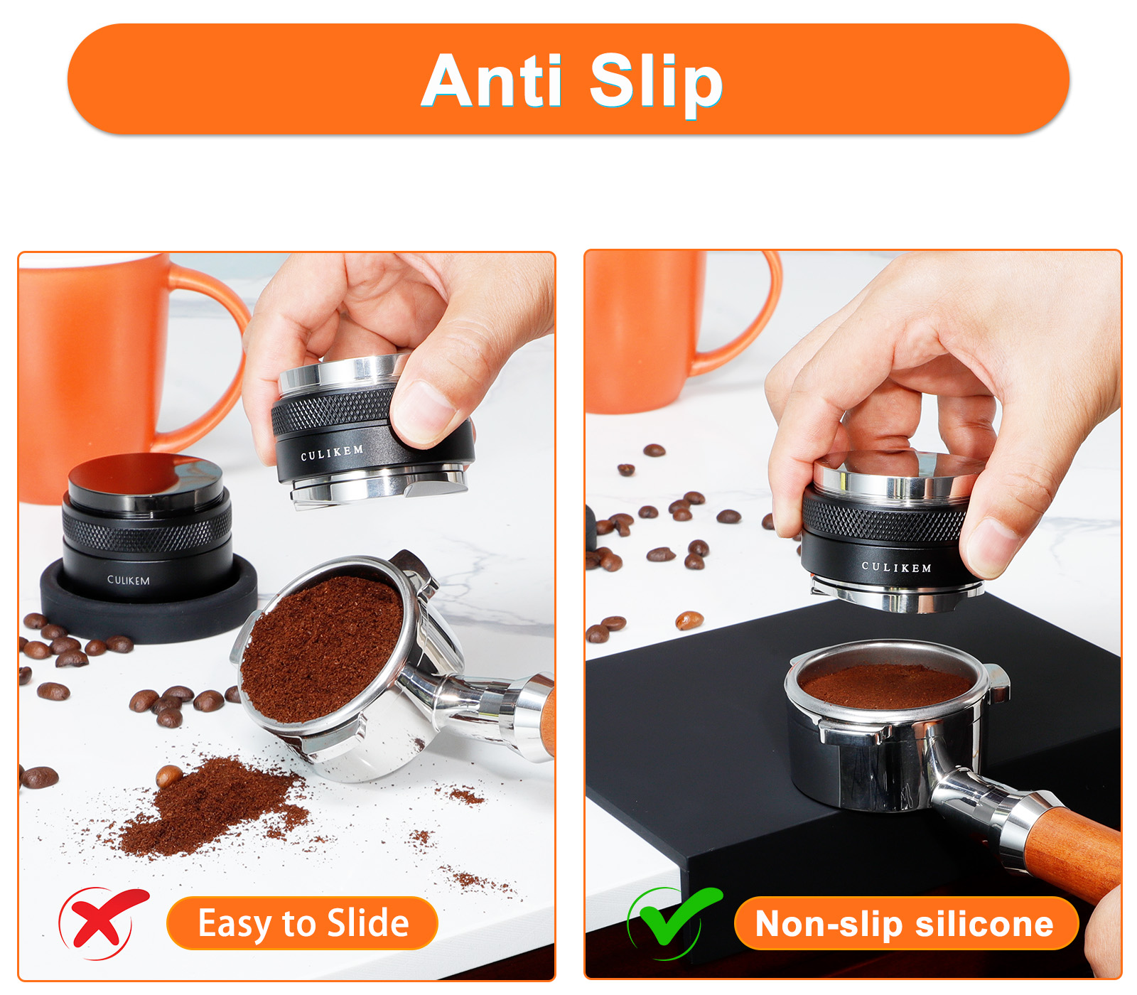 • Anti slip design: When the barista compacts coffee powder, the filter and countertop are prone to sliding, and both the barista and countertop are prone to injury. This mat has an anti slip design, tightly fitting onto the countertop to protect the barista and countertop.